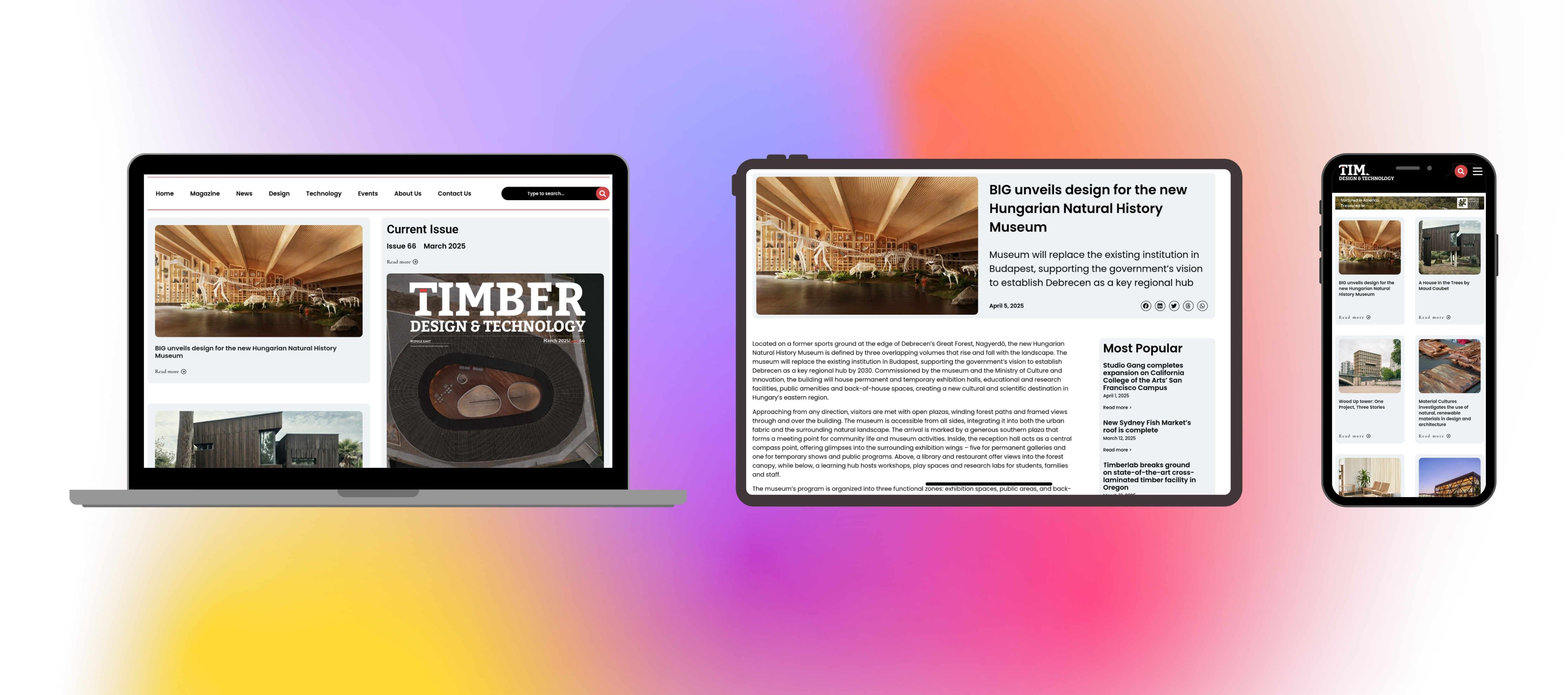 We redesigned Timber Design & Technology's website and magazine, blending design innovation with industry pragmatism. Our minimalist, modular approach enhanced readability and brought a fresh, sharp look to the wood sector, making technical specs feel anything but dull.